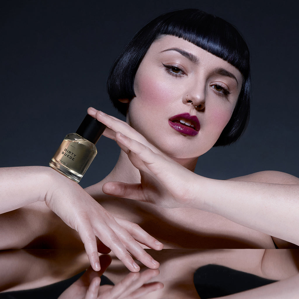 Velvety suede and musks are blended with balsam, jasmine, and soft amber in this clean and deeply sensual scent. Samples available.
