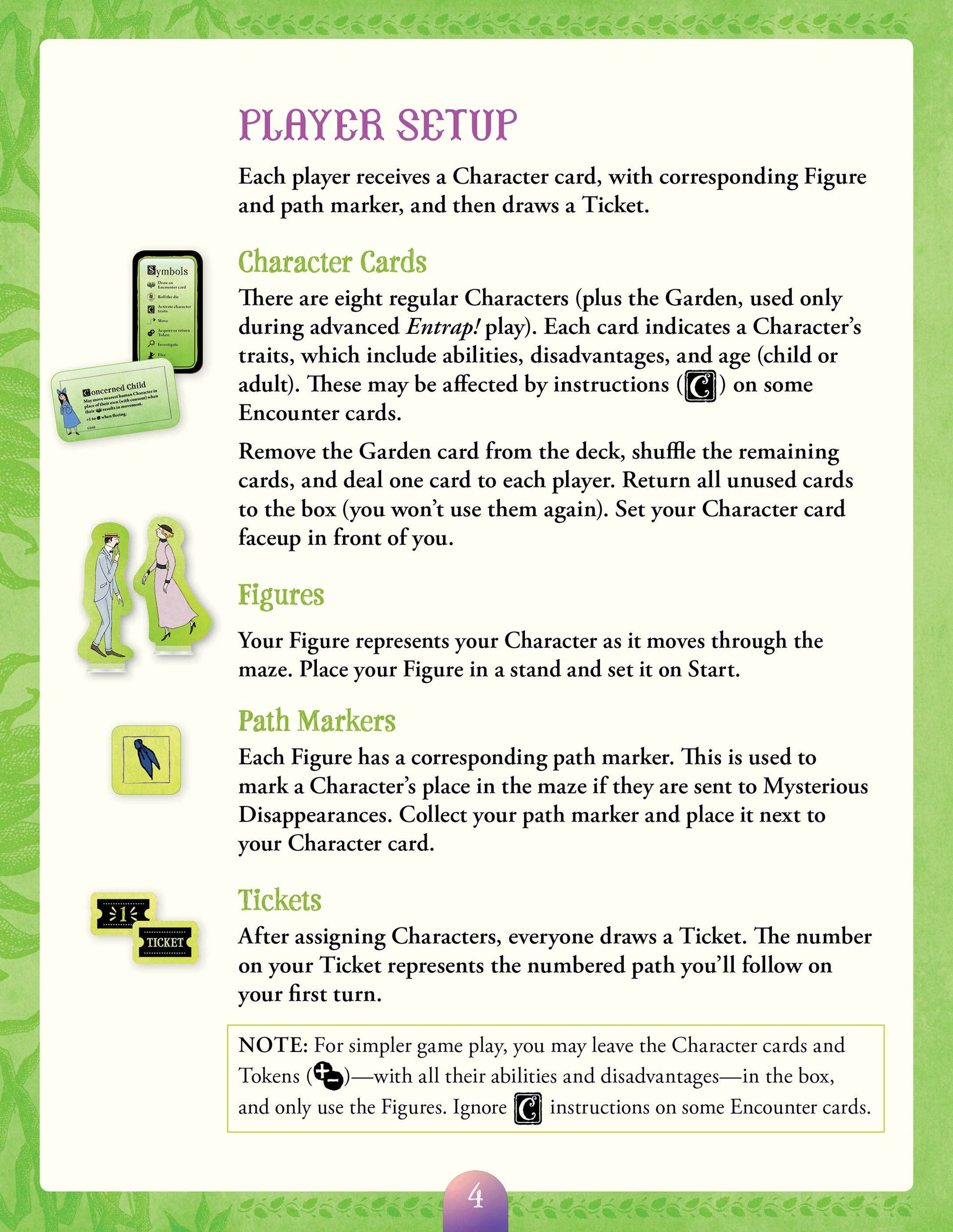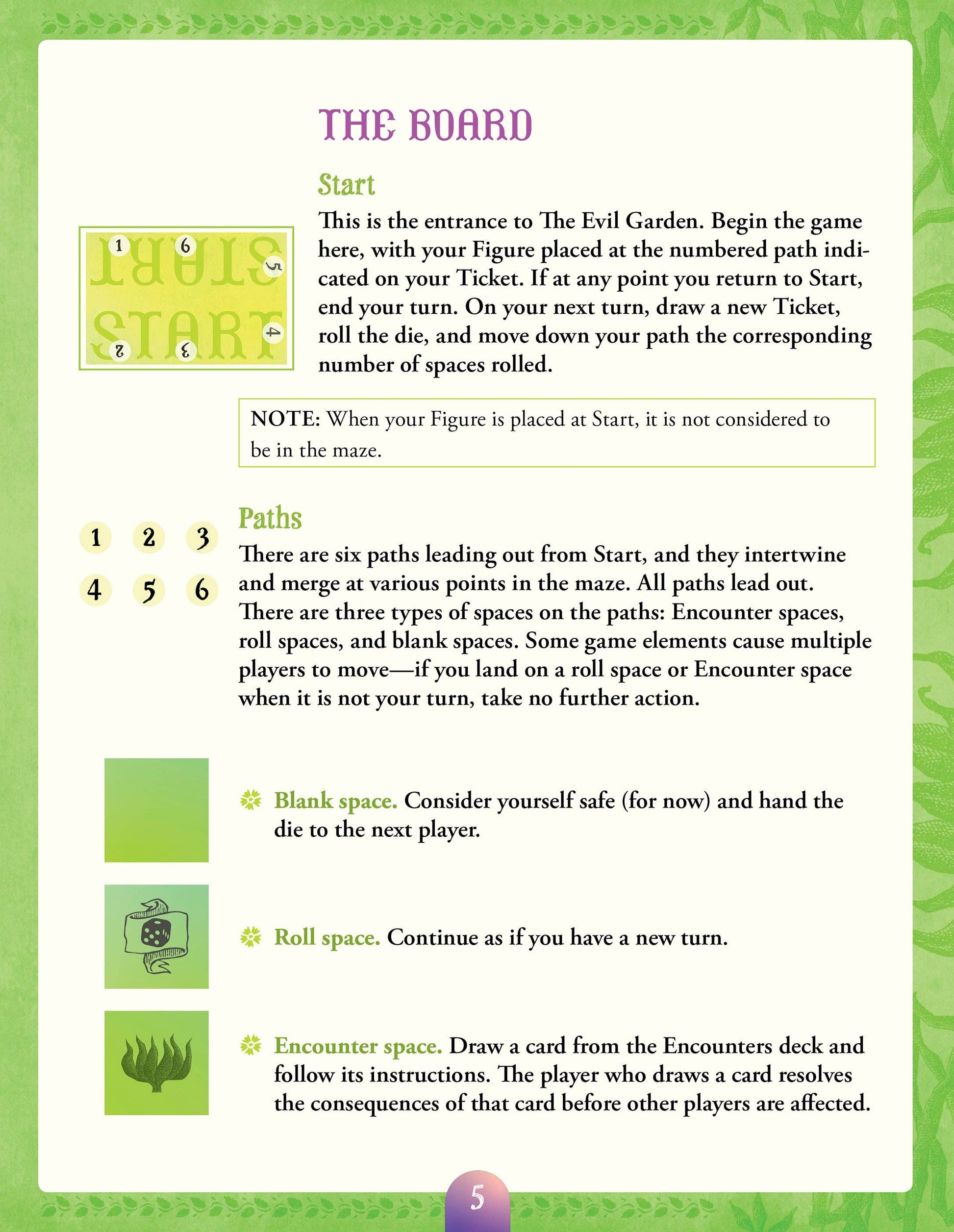 Join a party of unsuspecting gentlefolk fighting to survive an afternoon stroll in The Evil Garden. As you roll the die to make your way through the maze, you’ll encounter plants and animals that want to trap you, crush you, drown you, and carry you away. Search for the safest path, use your character’s traits to your advantage, and decide whether you’ll risk it all in order to sprint ahead. The first person to escape the garden wins!