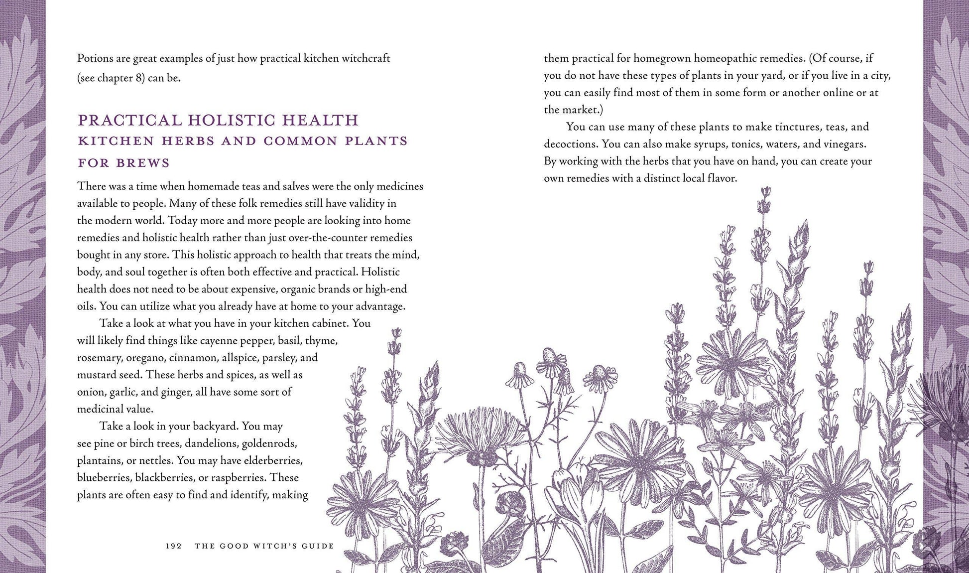 From cleansing spells to hands-on healing to the spiritual use of herbs, witches know which magickal and natural remedies work best! The Good Witch's Guide offers a treasure chest filled with holistic Wiccan magic and lore. Illustrated throughout, it teaches you which herbs and spices, oils and aromatherapy, brews, potions, spells, and more, can help you live life to the fullest. And with spells, remedies, and recipes from a roundtable of noted witches, healers, and mystical practitioners, this "spell"-binding book is a must-read for anyone who wishes to celebrate both good health and spirituality. Hardcover book with printed laminated cover; 5.5 x 6.5 inches; 320 pages.