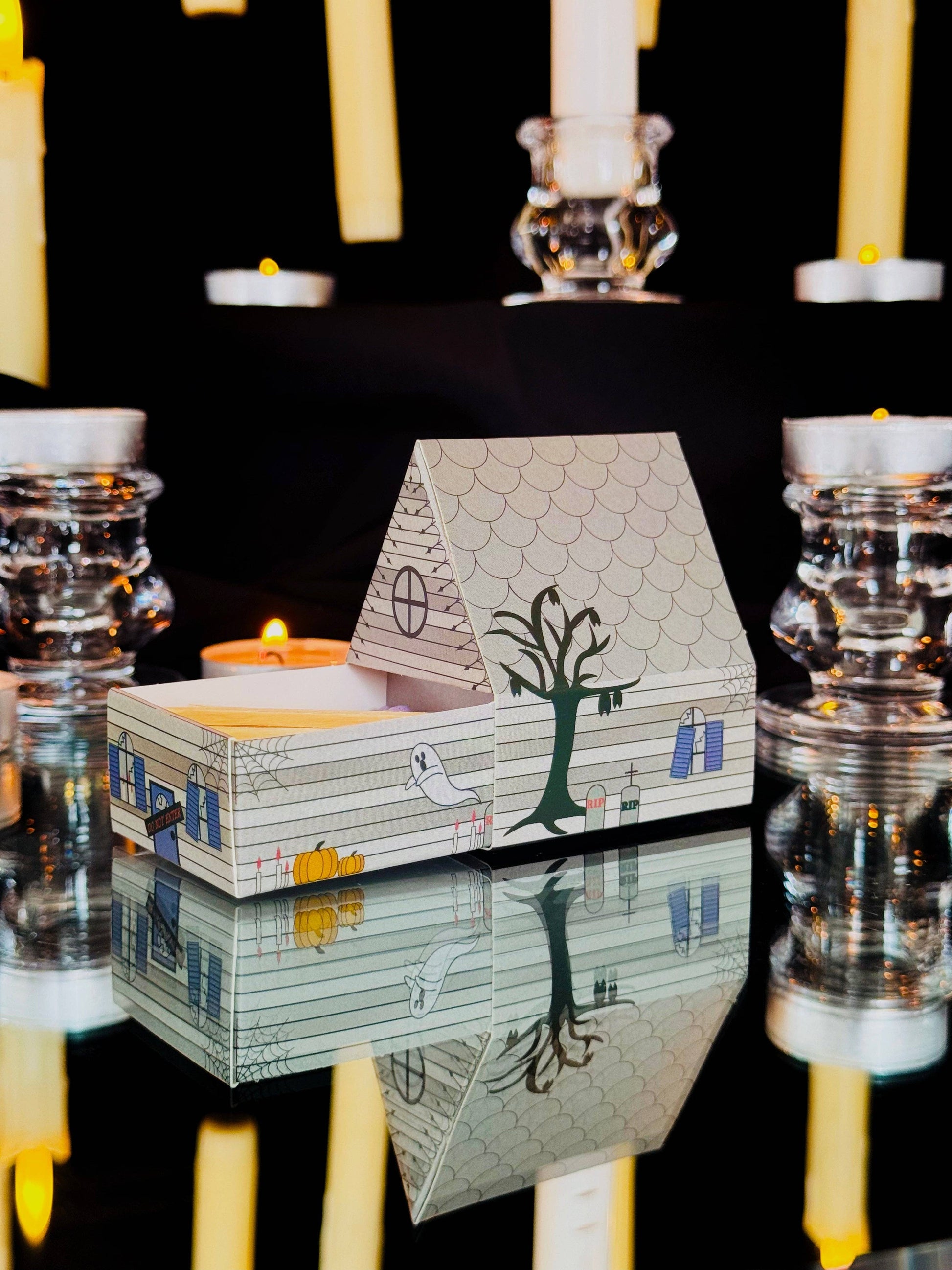These matches make me want to go to a haunted house and come home to watch scary movies 👻 Comes in a haunted-house-shaped box with lavender tipped matches! Perfect addition to your spooky decor and/or match collection!!