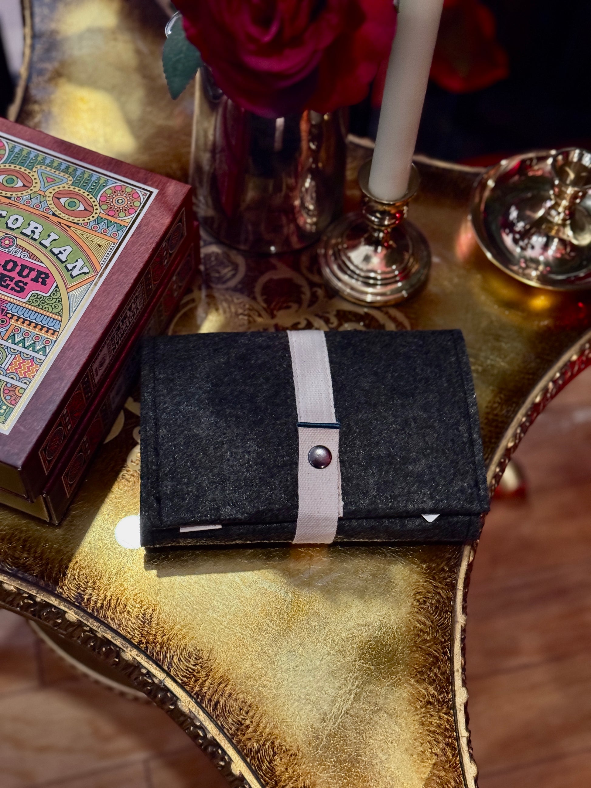 Post your adventures old-school style with our watercolor pencil travel postcard sets. These portable studios, with a 100% recycled case, include everything needed to create a mini masterpiece or sketch out a memory to send to friends and loved ones. Watercolor pencils can be used dry as colored pencils, or with water as watercolor paints. A metal snap closure wraps around a multi-fold charcoal felt pouch to contain contents securely; toss into your backpack and spread out on a mountaintop or lakeside, or while sipping rosé at a Parisian café... wherever inspiration strikes! Travel postcard set also available with watercolor paint. Designed by Gwen Weinberg.