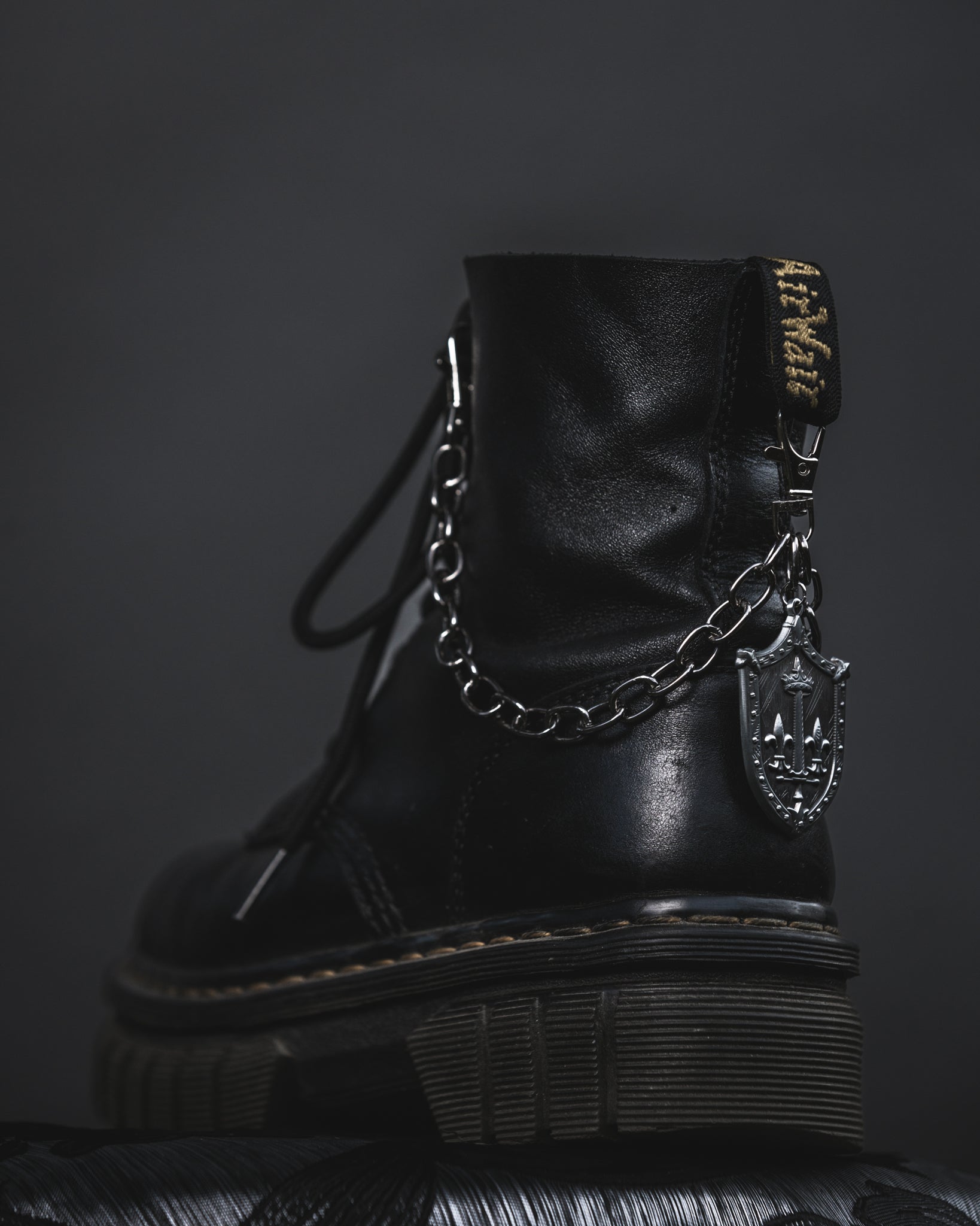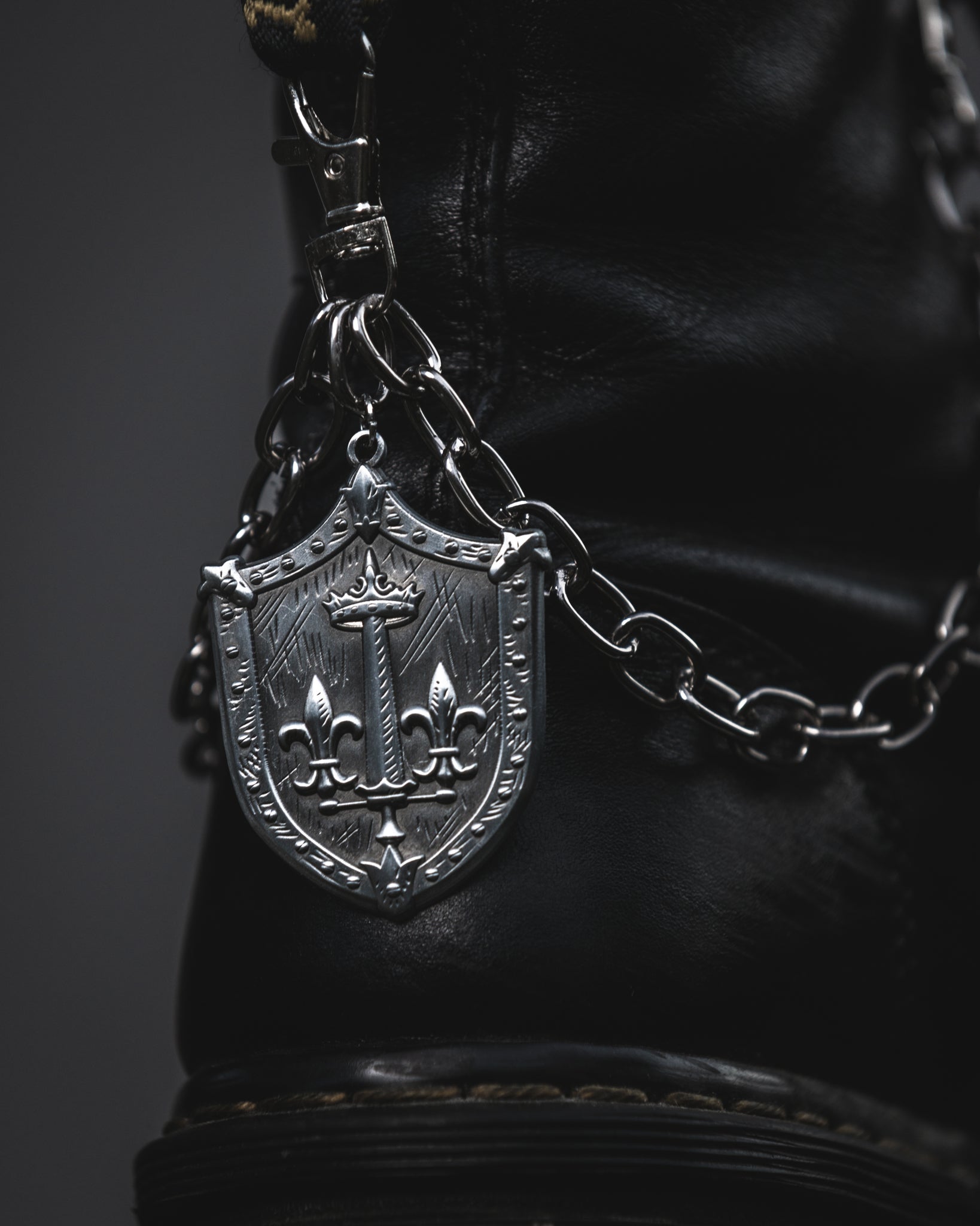 Our Le Fay shield design on durable chain to accessorize those battle boots!