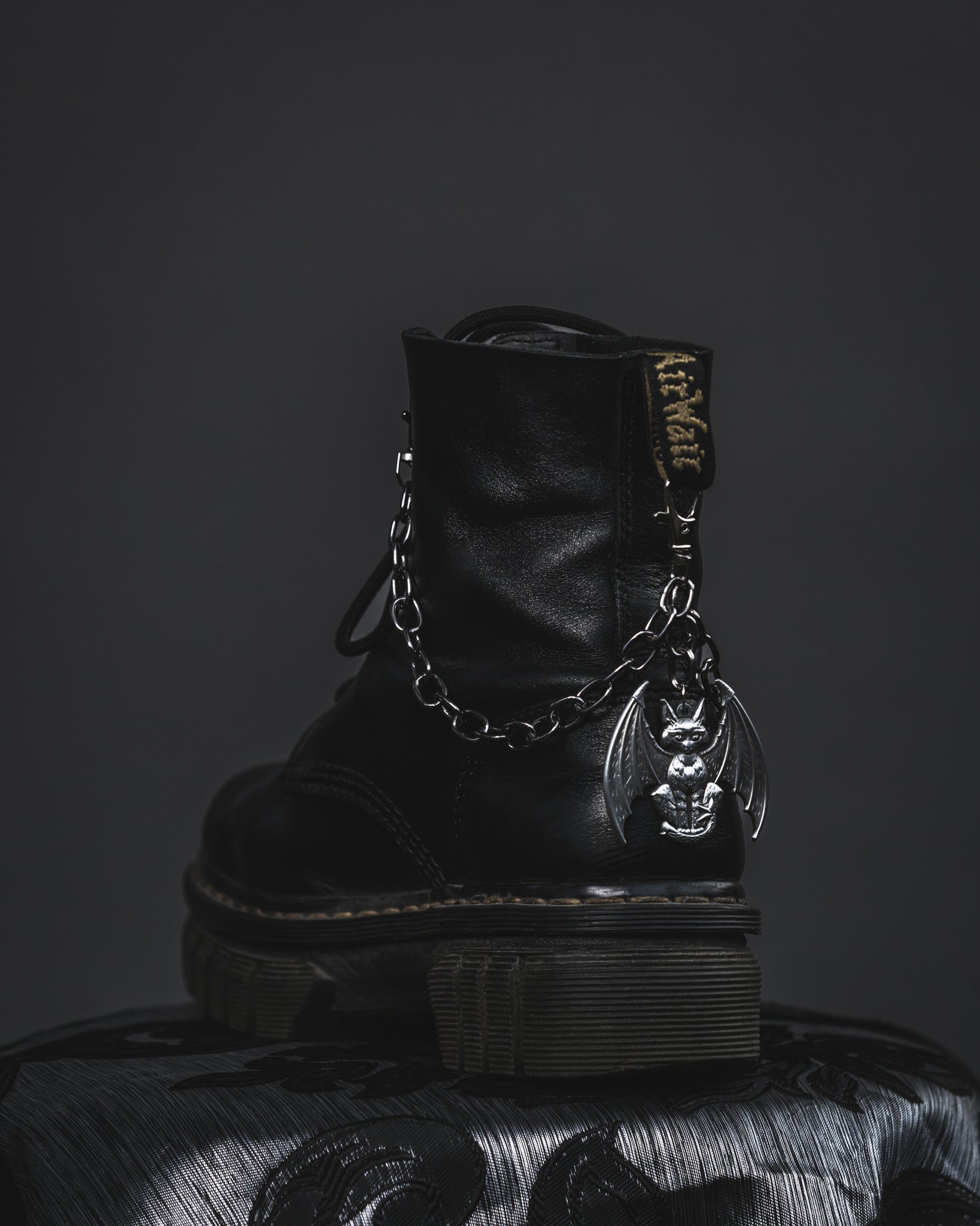 Our Lethal cat gargoyle design on durable chain to accessorize those battle boots!