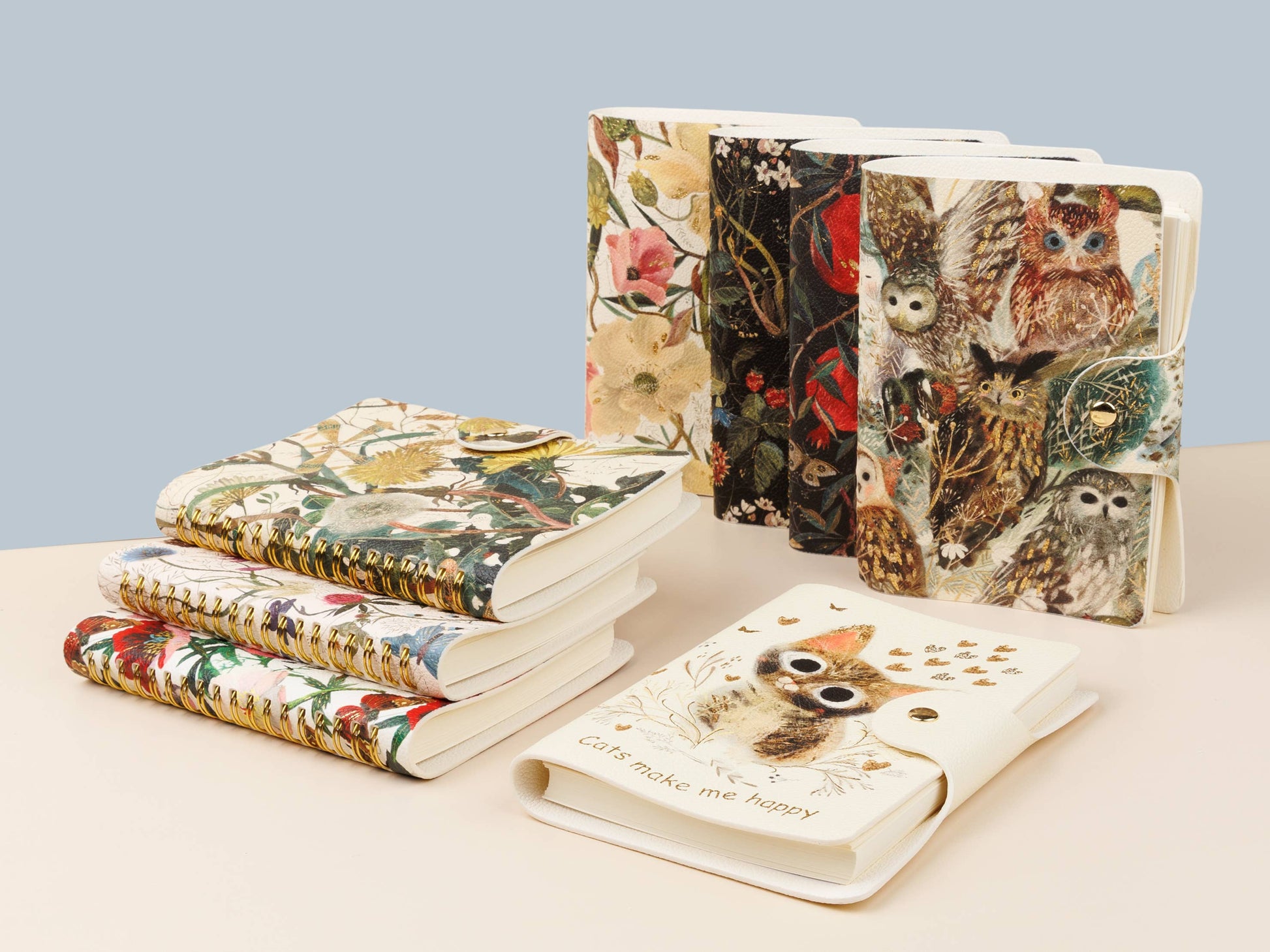 Our Beautiful snap-close B6 Diary features a rich, highly textured vegan leather cover with brass snap, 70 gram acid free paper and brass, open-flat spiral binding.