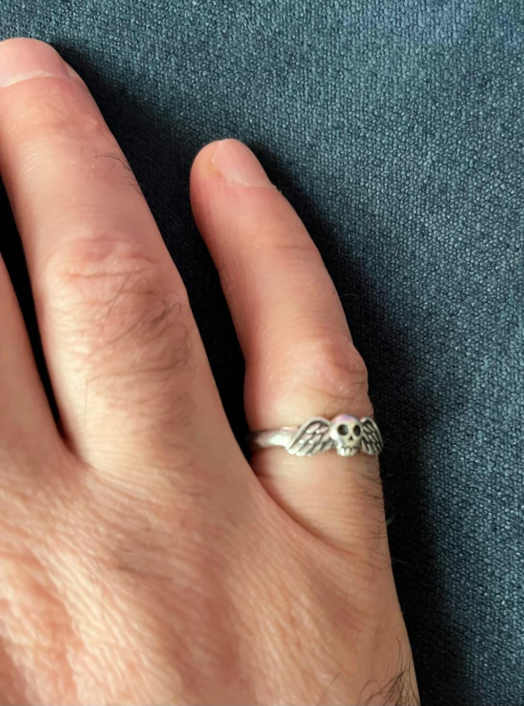 This sterling silver winged skull ring is a striking blend of the morbid and the ethereal. A delicately sculpted skull sits at its center, framed by intricately detailed wings—an elegant nod to both mortality and transcendence. More than just a statement piece, it carries the symbolism of rebirth, renewal, and spiritual awakening. A reminder that even in the darkness, transformation is always within reach.