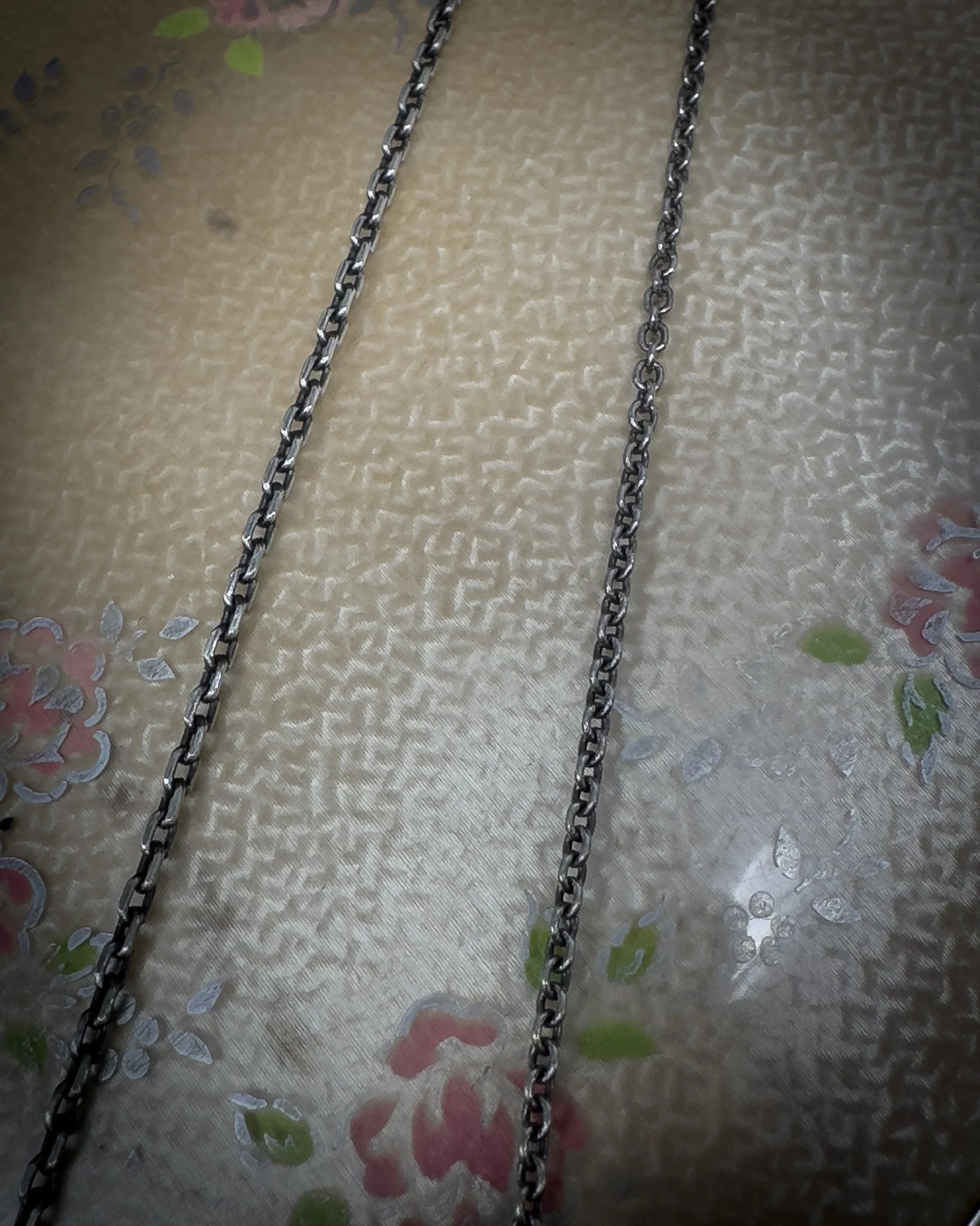On a 2mm oval trace chain. (*see last photo, it's the one on the right)