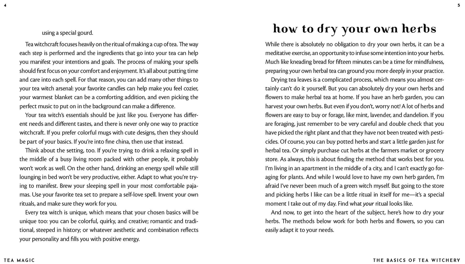There's nothing quite like a steaming cup of tea on a brisk day—but it can also be a potent form of spellcraft. The act of creating the perfect brew, if done with intention, can lead to happy days, boost energy, or even help develop intuition. Oolong, Earl Grey, jasmine, and more: each has a different energetic correspondence that can create a variety of spells. Steeped in the perfect base (milk, water, or even moon water); blended with milk (plant-based or dairy); and sweetened with honey, fruit, or spice-infused syrups—this loving compendium of recipes and spells is an essential enchanted companion to every daily cup. Also included is a fully illustrated guide to reading tea leaves, which has been used to divine accurately for generations. Hardcover Book with Printed Laminated Cover; 5.5 x 6.5 inches; 144 pages.