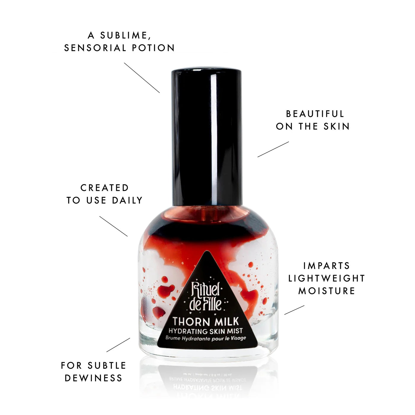 Thorn Milk is true magic. This is a sublime, sensorial potion that feels as beautiful on the skin as it looks in the bottle. This formula imparts lightweight moisture and subtle dewiness with an opulent blend of rosewater, Bulgarian rose, aloe, and botanical oils including rosehip and avocado. Thorn Milk must be experienced in person to understand its true power and beauty. You will never want to be without it again.
