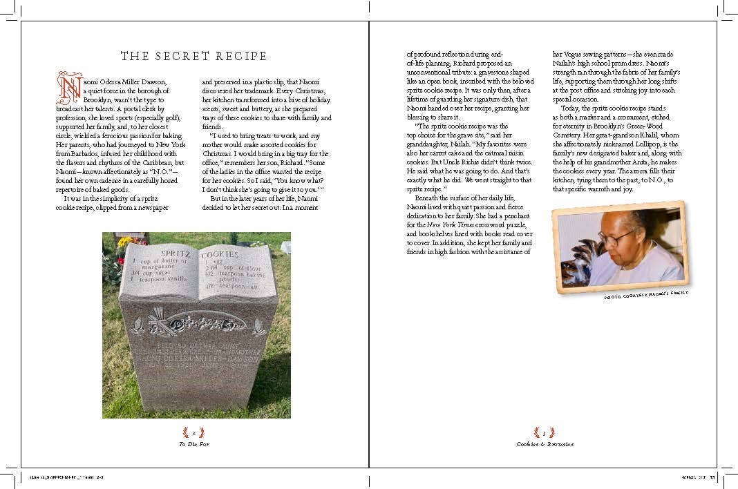 So much so that some families choose to remember their loved ones through the dishes they made and the food that brought comfort to those around them by immortalizing their recipes on their gravestones. Rosie Grant, the creator behind @GhostlyArchive, has been searching out and documenting this interesting phenomenon. In To Die For, Rosie collects 40 recipes she’s found across the globe, carved into headstones or associated with a grave that has a story to share. Each recipe is accompanied by an interview with the remaining family, plus photography of the food, the gravestone, and any memorabilia the family wanted to share. Recipes include: Spritz Cookies Homemade Fudge Chicken Soup French Si