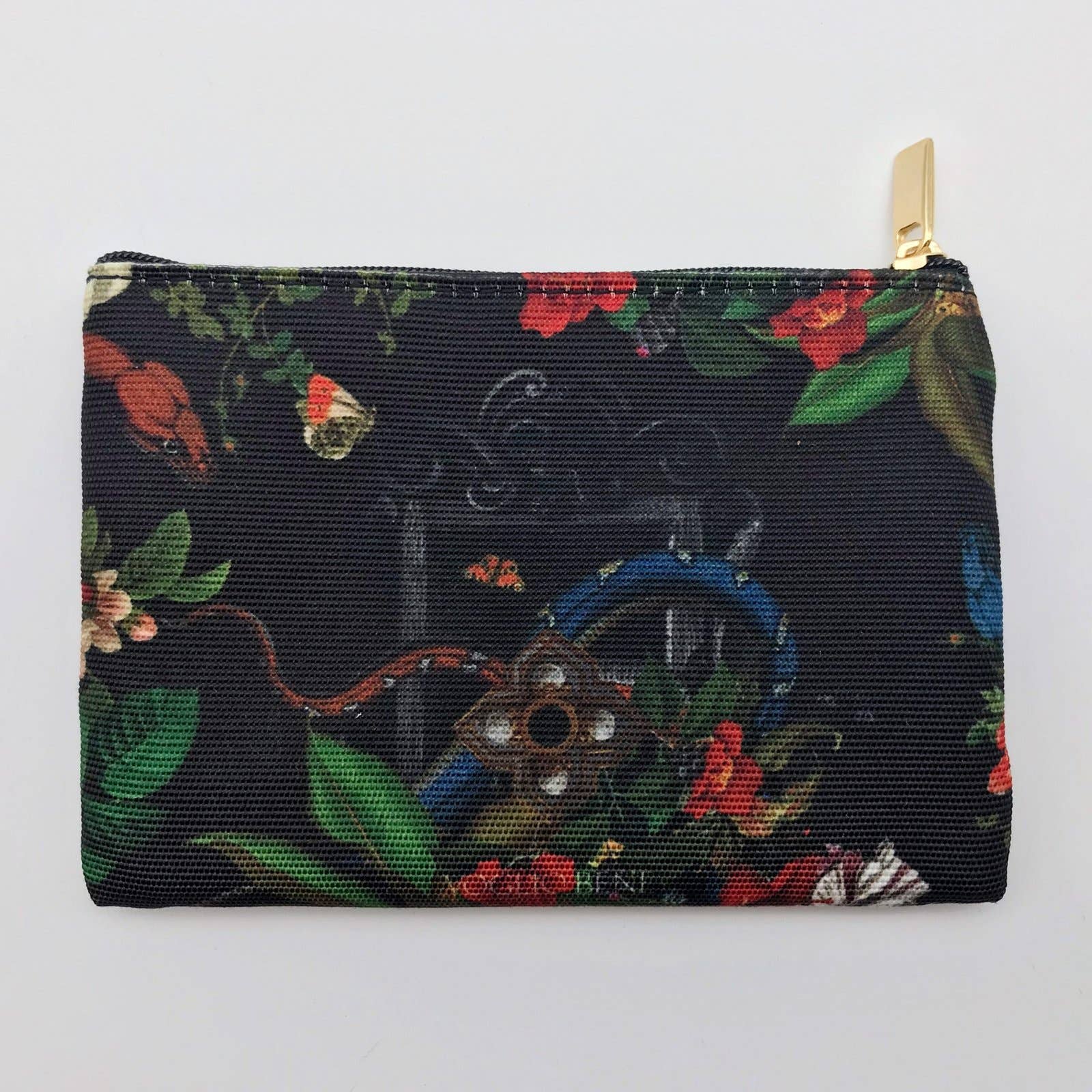 9.5X14cm coin purse printed on polyester canvas. Front/back. Finished with black zip and inner lining